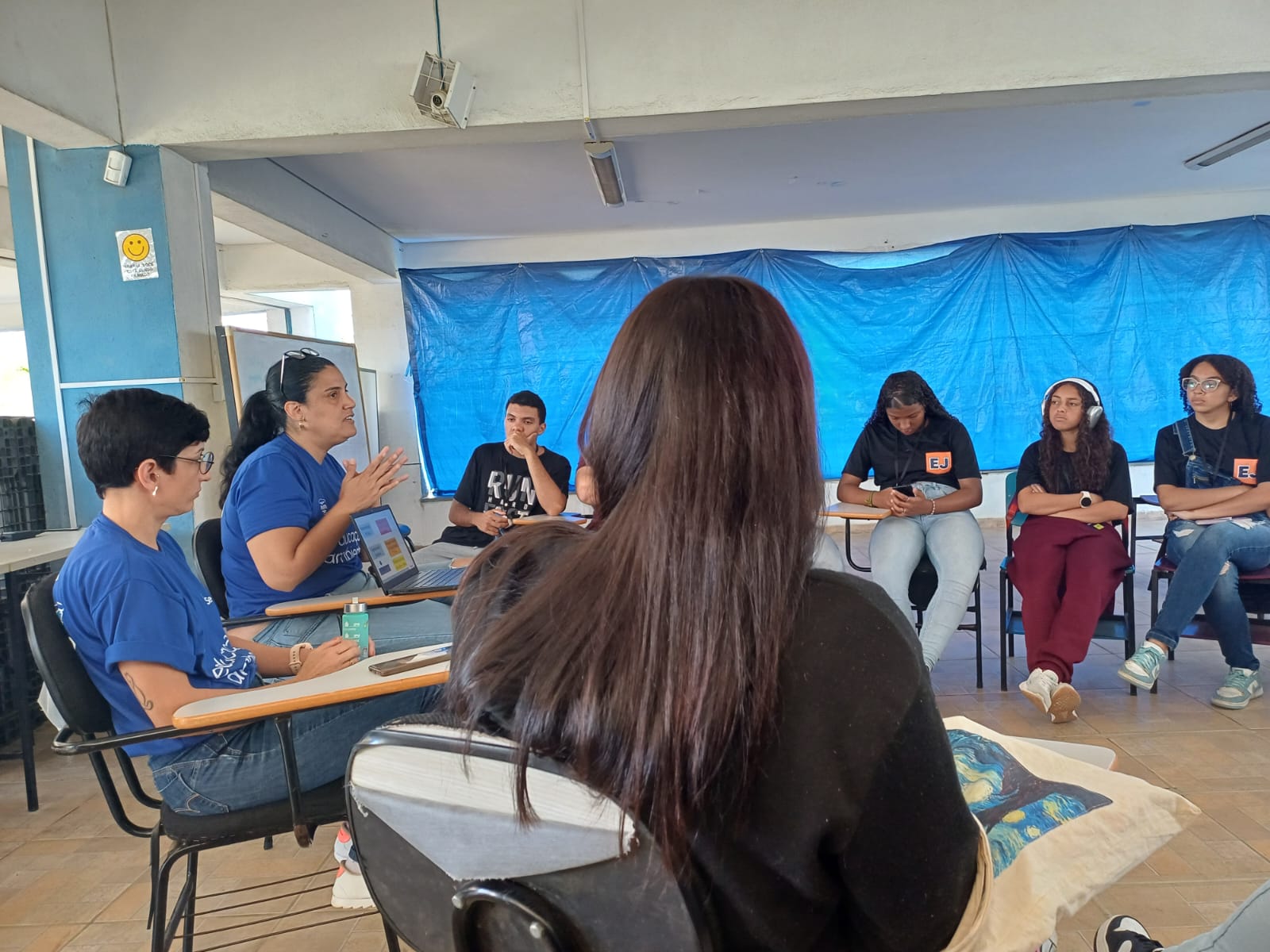 Na última segunda-feira, 18 de novembro, as servidoras do Serviço Municipal de Água e Esgoto (Semae), Juliana Machado, engenheira ambiental, e Jenifer Clarisse da Silva, técnica em saneamento, realizaram uma importante atividade educativa com os alunos do programa Empodera Juventudes, do território Conjunto Santo Ângelo. A ação teve como foco o tema saneamento básico, um dos componentes do trabalho de conclusão de curso dos jovens participantes.