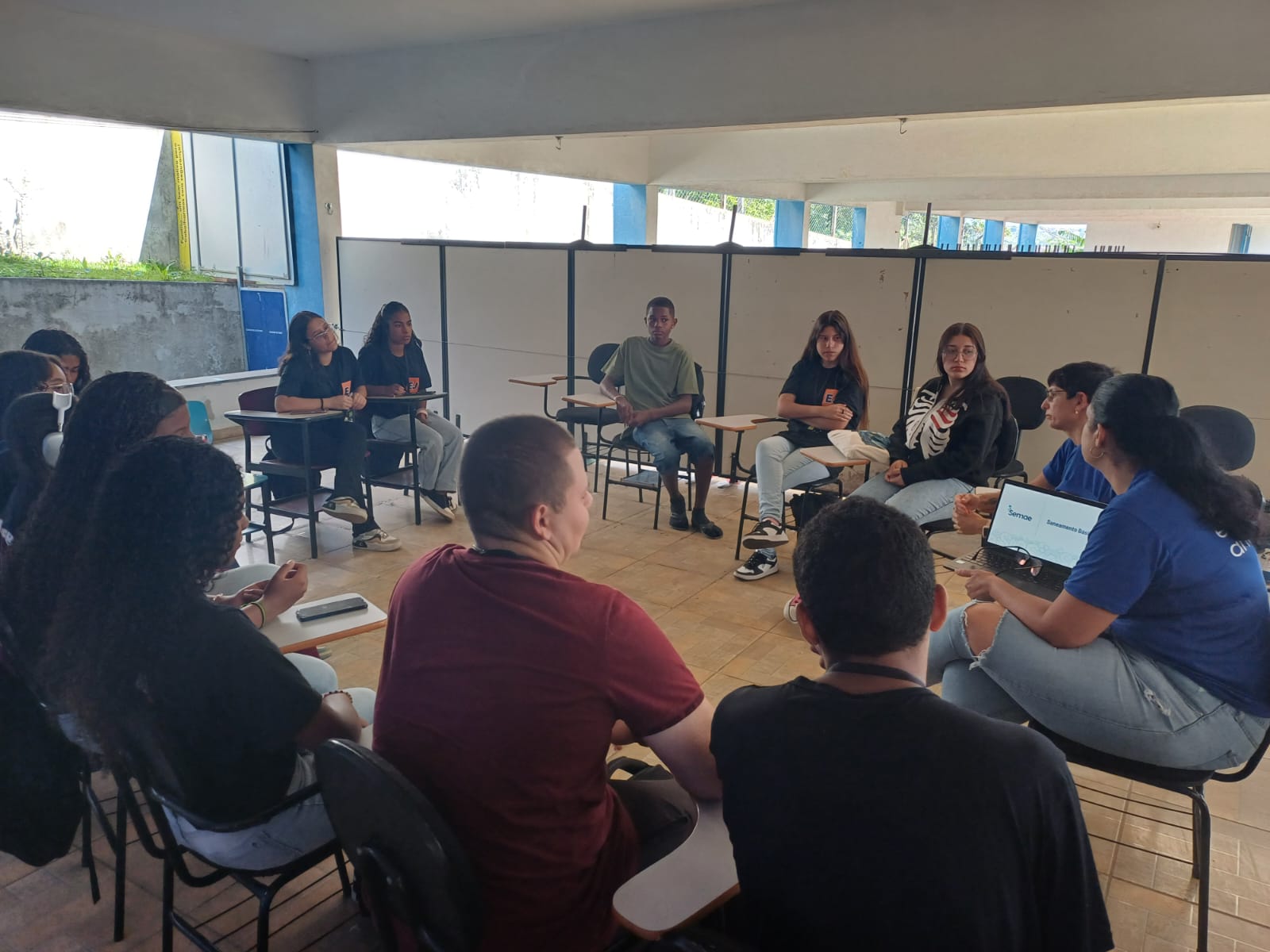 Durante a atividade, os estudantes participaram de uma aula interativa e uma dinâmica de perguntas e respostas sobre o tema, promovendo um aprendizado prático sobre questões ambientais e de saneamento. O conteúdo abordado incluiu tópicos como o ciclo da água, a distribuição de água no planeta, poluição dos recursos hídricos, o tratamento de água, o uso consciente, o esgoto doméstico, o reuso de água, a drenagem urbana e a gestão de resíduos sólidos. A ação teve como objetivo sensibilizar os jovens sobre a importância desses temas no cotidiano, além de fornecer informações valiosas para a formação de cidadãos mais conscientes e engajados com as questões ambientais.